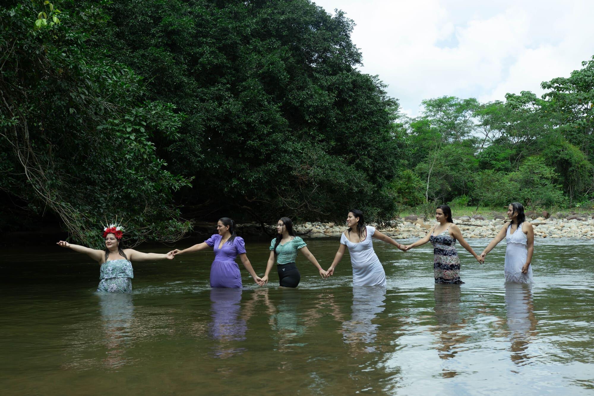 Uno de nuestros proyectos más importantes ha sido la producción del documental "Reflejos", con el apoyo de OXFAM Colombia. Esta obra narra la historia de cuidadoras y defensoras de la Amazonía y su relación con el agua. La creación de este documental no solo nos permitió aplicar lo aprendido en la Escuela, sino que también reafirmó nuestro arraigo territorial, pues fue producido desde la realidad de las mujeres: en el barro, a través de los ríos, bajo la sombra de los árboles y en la humedad de la selva. Gracias a este trabajo, hemos llevado nuestras voces a escenarios internacionales como la COP 16 y la Gira Internacional de Bruselas.